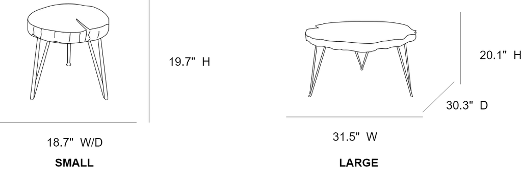 | Small (in.) | 18.7″ L × 18.7″ W × 19.7″ H | Large (in.) | 31.5″ L × 30.3″ W × 20.1″ H |