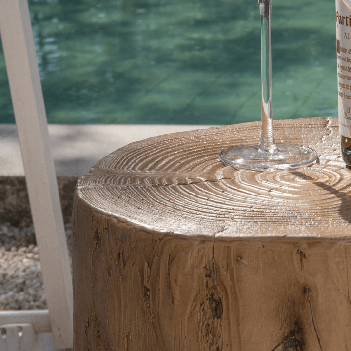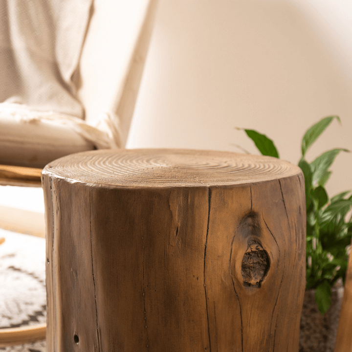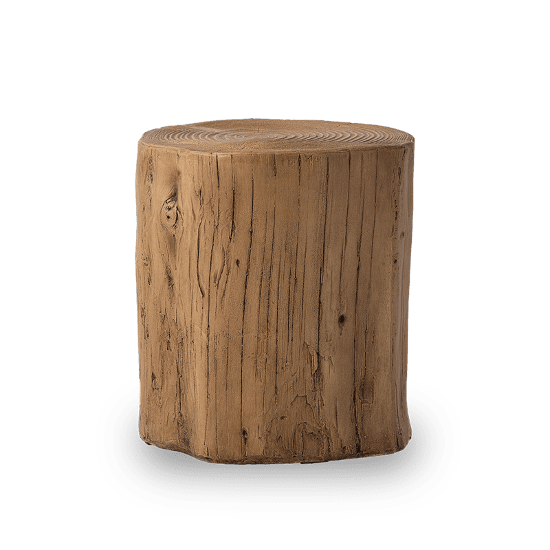 This end table puts the deep cracks and hand-pained knotty grain of natural wood on full display on a recessed cylinder base of Magnesia oxide, bringing a natural feel to where it stands. This weather-resistant table is the perfect addition to your outdoor seating area, giving you a spot to rest drinks and snacks while relaxing outdoors. This end table also can be used as a stool in a pinch. This round stump side table harmonious with the surrounding environments. For a circular assortment that’s full of organic color and texture, to partner our outdoor wicker furniture will be a good choice. Each table will exhibit its own unique markings so each piece may have subtle differences.
