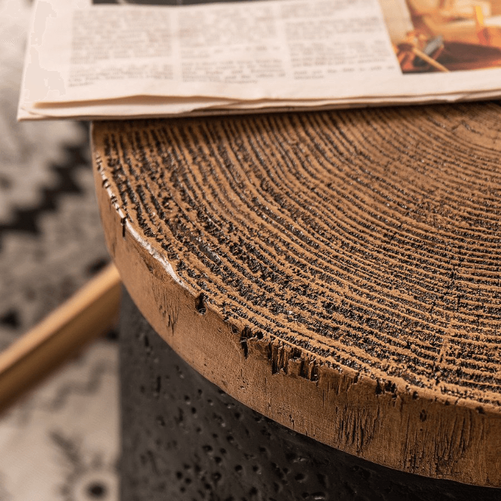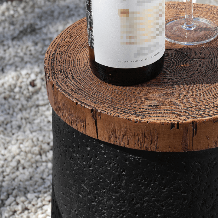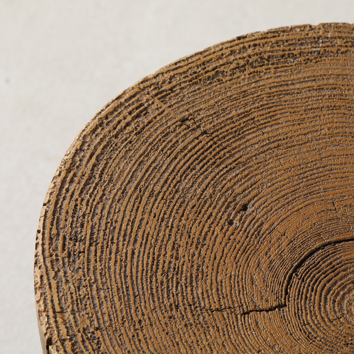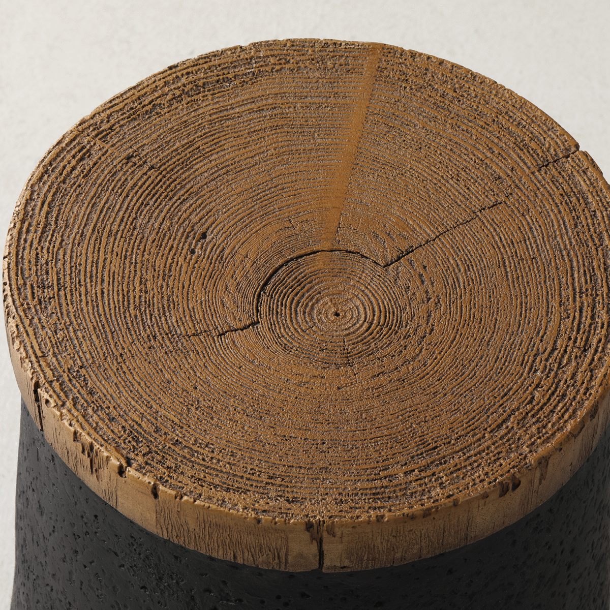 A light brown hand-painted faux wood slab table top is accented by the dark brown cork-like texture of the unique shaped base. Earthy texture and wood grain appearance is masterfully crafted from sturdy yet lightweight MgO composite. No trees were harmed. These antique-style side tables feature vintage yet stylish designs. The designs give each piece its own history and a unique look, which will make a distinctive addition to your house. Whether you are looking for a coffee table to place your food and drinks, end table for a lamp, vase or other decorative items even as a stool, this side table is the perfect choice for you. Great for patio, balcony, and everywhere you want.